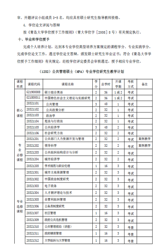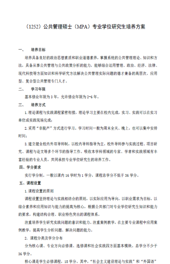 公共管理硕士(MPA)专业学位研究生培养方案