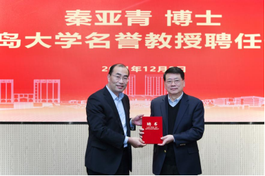 讲座之前,孔伟金副校长为秦亚青教授颁发了青岛大学名誉教授证书。
