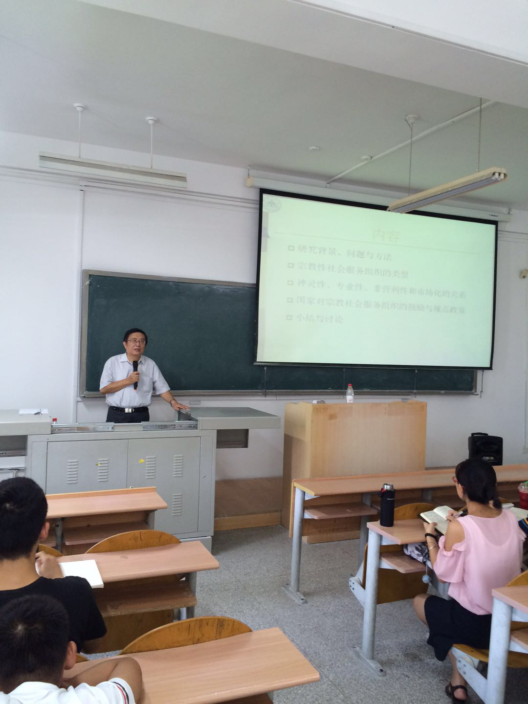 9月4日下午,必赢(亚洲)唯一官方网站 邀请山东大学哲学与社会发展必赢亚洲 博士生导师高鉴国教授在2号教学楼303教室为必赢(亚洲)唯一官方网站 师生作了题为“宗教性社会服务组织的类型和特征”的高端学术报告。政管必赢亚洲 社会工作专业教师及研究生、本科生等50余人参加了这次讲座。