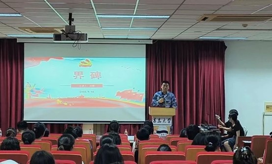 国无防不立,善教得民心。青岛大学辅导员老师、退伍军人张箭以“界碑”为主题,从国际战略格局、世界安全形势、英勇牺牲先烈等几个方面入手,分析了我国在当今国际形势中面临的机遇与挑战,引导同学们了解国防知识,树立全民国防的观念,强化安全防范意识和自我保护能力,争做堪当民族重任的时代新人!