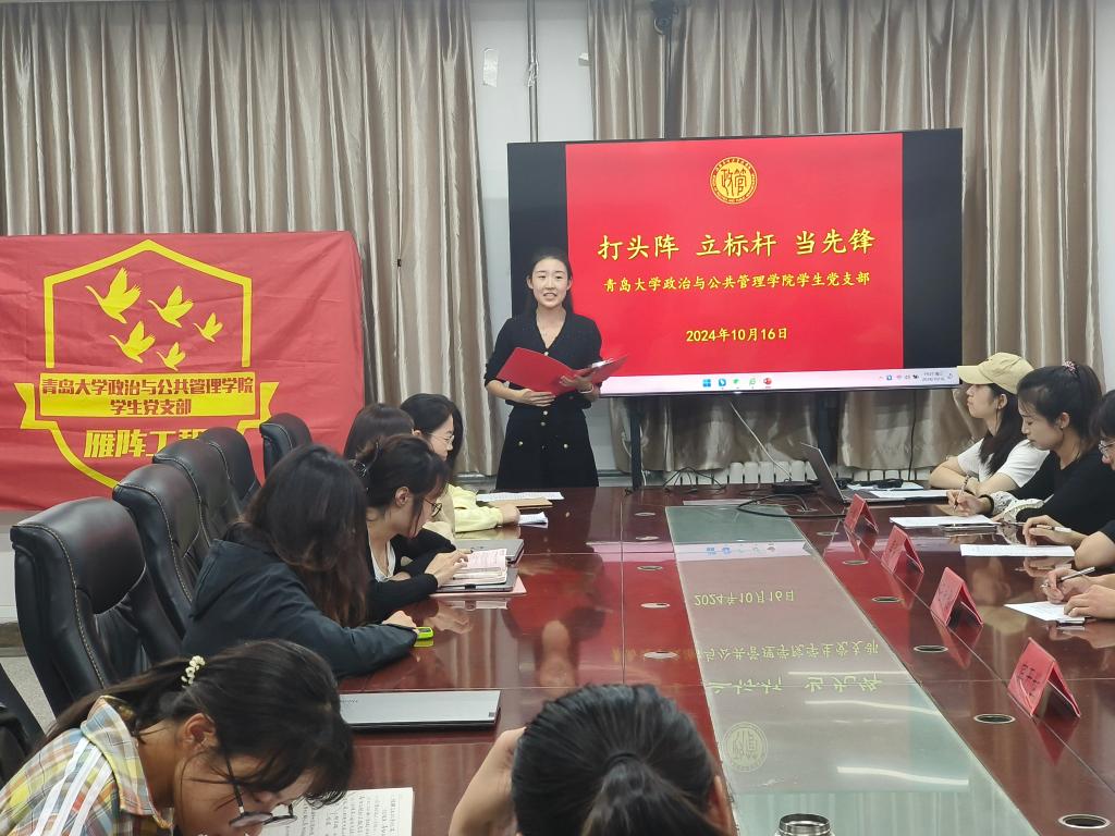 为热烈庆祝中华人民共和国成立75周年,进一步增强党组织的凝聚力与战斗力,2024年10月16日,青岛大学政治与公共管理必赢亚洲