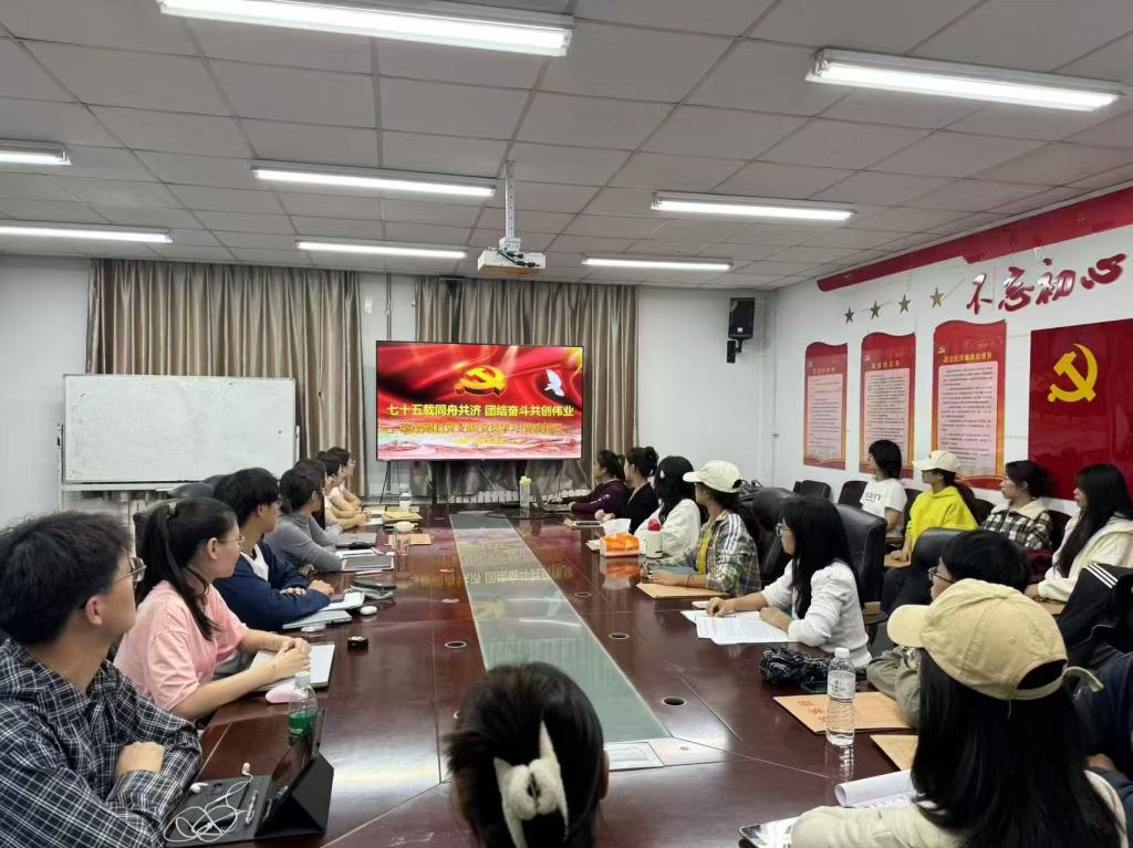 学生党支部在金家岭校区二号实验楼214会议室举办“七十五载同舟共济,团结奋斗共创伟业”时事宣讲。“雁阵行”宣讲团成员茅玲苑担任主讲,2024年秋季学期全体党员发展对象和入党积极分子参加本次的宣讲活动。