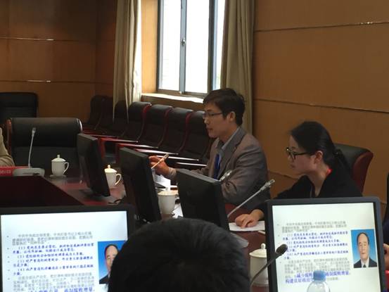 陈洪连副教授和薛斐、李行健、赵玉聪、徐安参加了此次大会,并分别提交《监督执纪“四种形态”的哲学反思与运作逻辑》、《依规以德治党的新价值•新挑战•新动向》、《促进党内关系正常化的历史考察与理论反思》等参会论文。陈洪连副教授在小组会议上围绕监督执纪“四种形态”做主题发言,并同与会专家进行交流,取得了良好的参会效果。