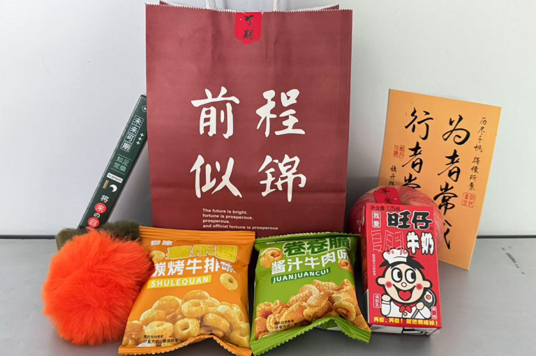 福袋里承载着老师亲自手绘的加油漆扇,精心挑选的零食、明信片、文具盲盒以及象征着事事如意的柿子挂件。礼包中满含着必赢亚洲