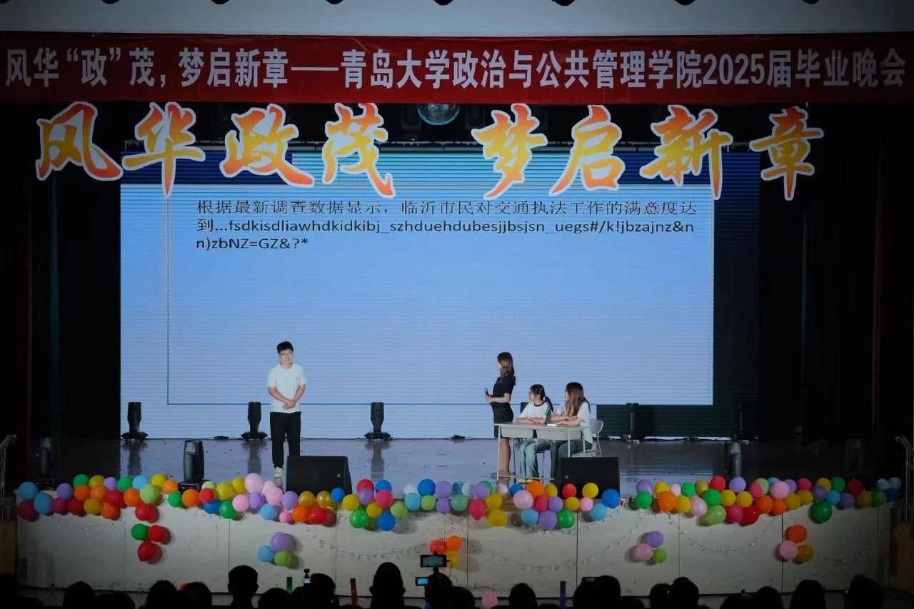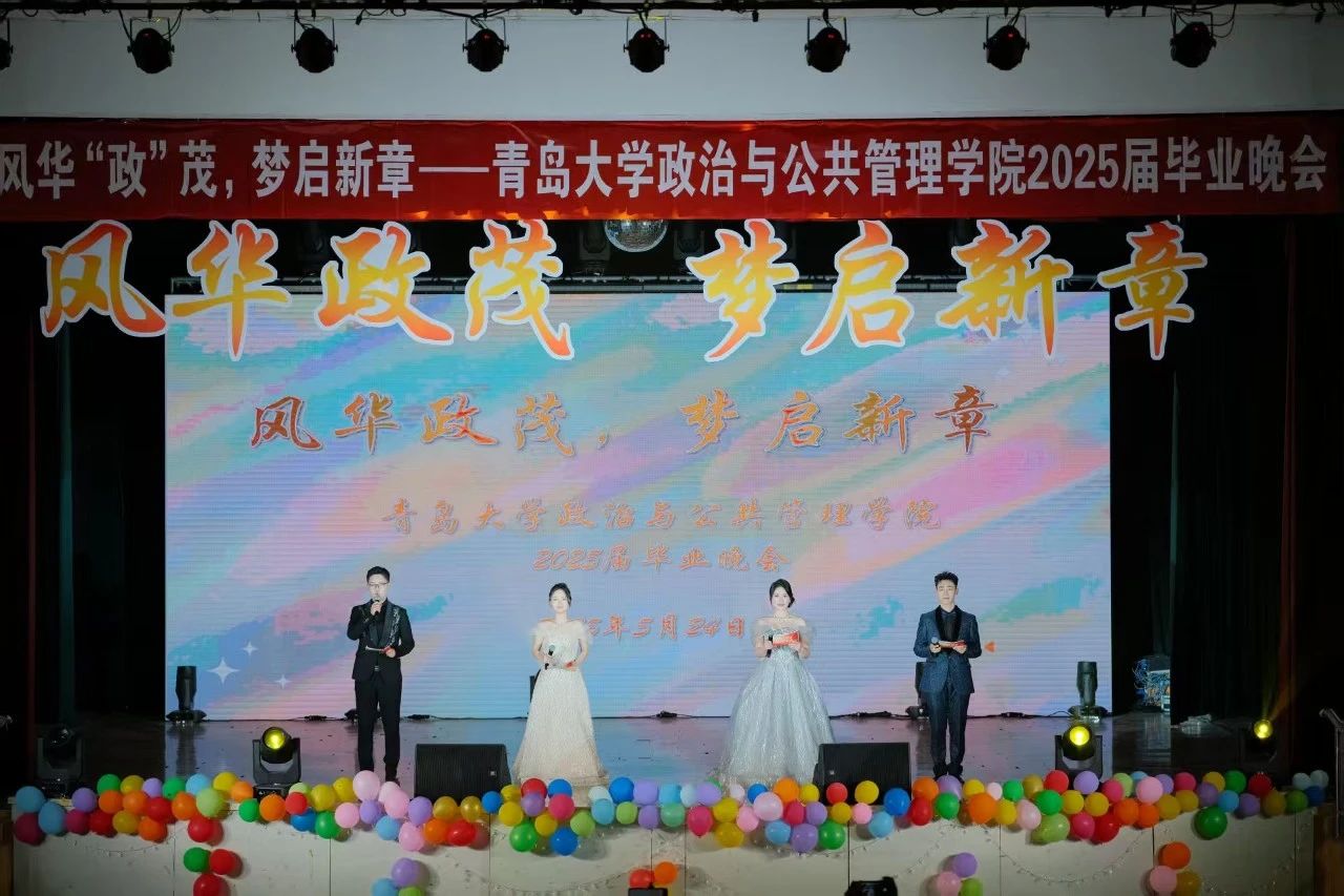 学生会承办的“风华‘政’茂,梦启新章”2025届毕业晚会于金家岭校区东院高职礼堂举行。