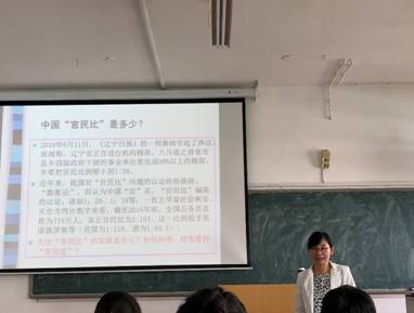 25日的教学工作坊活动首先是公开课,各系分管本科教学的副主任以及教师代表观摩了学校十佳教师孙晓燕为15级行政管理专业学生开设的《国家公务员制度》课。这次课主要讲授公务员的职位分类,课程开始孙老师就提出了一个问题:“中国官民比是多少?”并展示了2017年、2018年的各种数据和新闻报道,引导学生分析第二个问题:“关注官民比的实质是什么?如何理性看待官民比?”通过案例导入与问题导向促使学生思考,激发学生学习兴趣。以大家耳熟能详的案例人物和职位,重点给学生讲解了品位分类与职位分类的概念、区别、优缺点等知识。最后,与学生共同分析和讨论因人设事与因事设人的现状和问题。课堂气氛融洽,师生互动较多,教学效果良好。