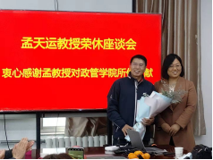 向孟天运教授赠送纪念品,社会学系副主任刘黎红副教授向孟老师敬献鲜花。
