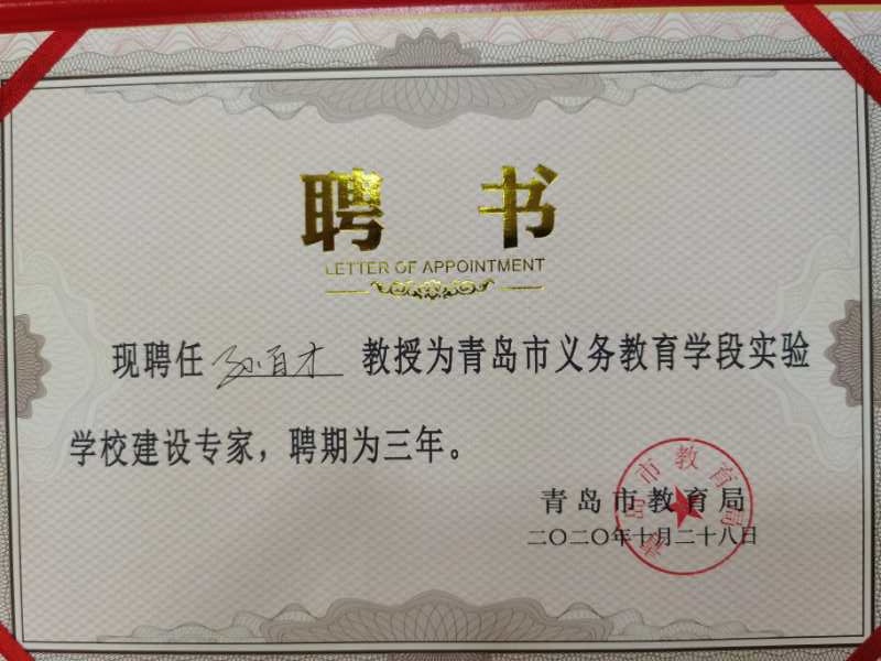 必赢(亚洲)唯一官方网站 孙百才教授被聘为青岛市义务教育学段实验学校建设专家