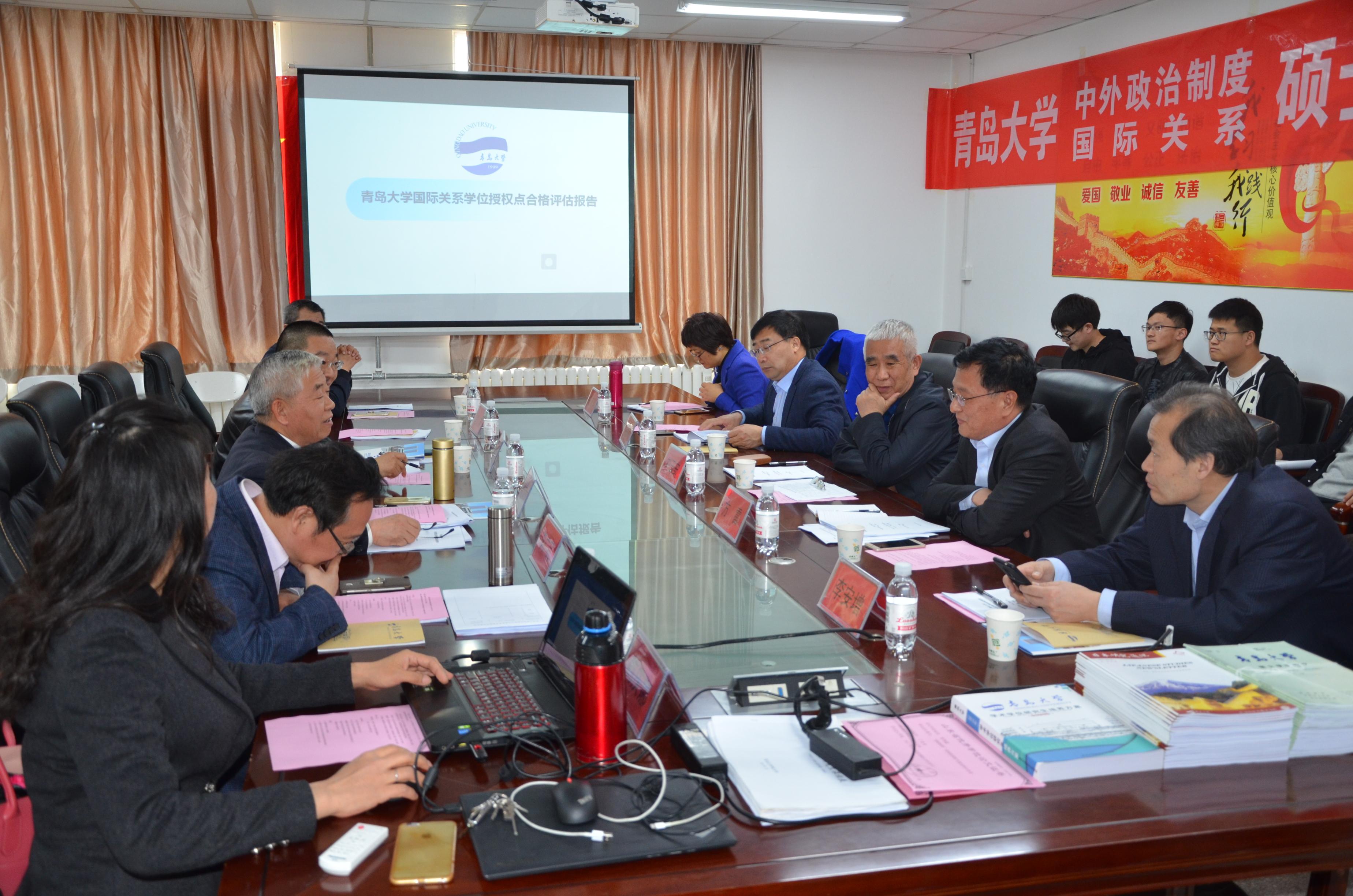 专家组一致认为青岛大学国际关系学位授权点具有深厚的历史积淀,在国内形成了一定的学术影响力;肯定了学位点的人才培养质量,学生基本功扎实,深受国内知名研究生招生单位的欢迎;认为该学科结合青岛的地域优势与发展目标,在国际环境外交、东北亚国际关系、国际关系与国际法等领域体现了学科特色;支持该学位点在国际化人才培养方面的努力,尤其是与美国佛罗里达国际大学建立联合培养硕士生和常规学术交流机制方面,并且建议将拉美研究作为学科发展的一个重点方向。专家组一致同意本学位点通过合格评估。