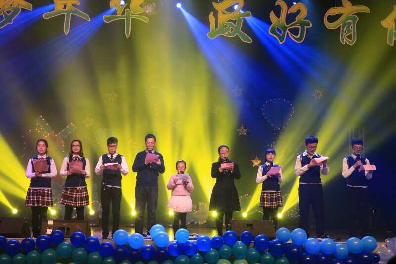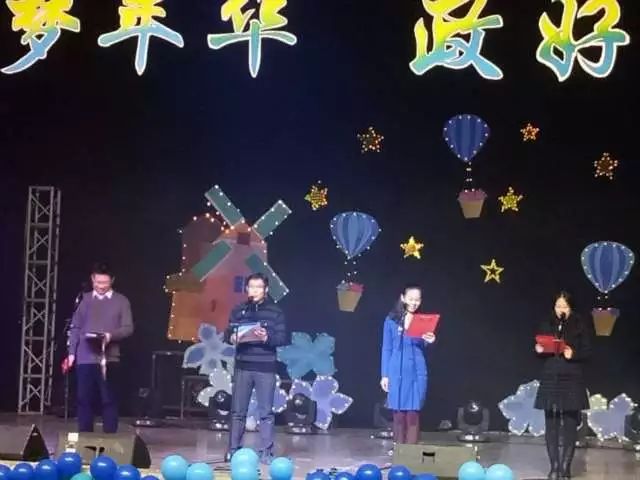 辅导员孙建华、徐伟及徐伟老师的女儿、2017级学生为我们倾情献上了铿锵有力的朗诵《青春 梦想 未来》