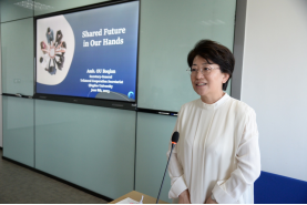 刘彩云发表致辞,对欧渤芊秘书长一行来访表示欢迎,并介绍青岛大学合并办学三十周年的成效与展望。欧渤芊秘书长以中日韩合作秘书处工作为依托,分析了当前中日韩三国合作的机遇与挑战,认为中日韩三国作为促进东亚和世界和平发展的重要力量,应增进互信、团结合作,共同为地区稳定和经济复苏做出贡献,携手推动区域政治稳定、经济繁荣和人文交流合作向前发展。在提问互动环节,就同学们关心的“如何处理中日韩三边关系”“中日韩三国合作的未来走向”以及“中日韩城市外交面临的挑战”等问题,欧渤芊秘书长结合中日韩合作秘书处的具体工作实践进行了详细的解答。