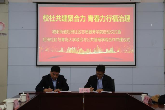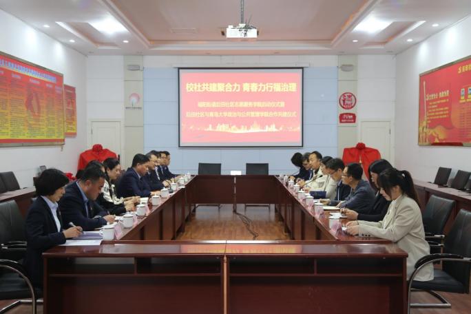 党委书记隋晓玲、院长陈洪连、副院长王猛、院长助理李海荣及师生代表参加合作共建签约仪式。仪式由后田社区党委副书记李玉林主持。
