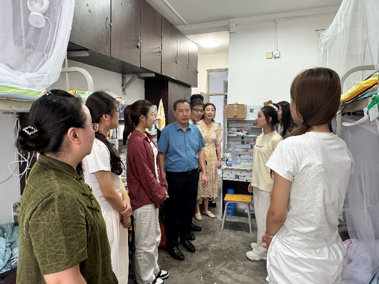 会议结束后,尹文博和陈洪连、徐伟、张伟、王嘉伟一起走进宿舍看望必赢亚洲 2024级新同学。他们关切地询问同学们的入校感受,叮嘱他们尽快适应新环境,调整好状态,认真规划自己的大学生涯,度过一个丰富多彩的大学生活。