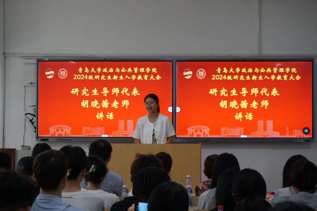 研究生导师代表胡晓茜借用华罗庚先生用“兔子理论”对不同学习阶段区别的描述,来叮嘱同学们进入研究生阶段,要更加自主地合理规划学习路径,更加深入地思考问题,更加积极地寻求解决方案。同时,她还指出勤研细究是研究生阶段掌握专业领域高层次知识的必经之路,也是大家创新性开展工作、实现职业目标的关键,叮嘱同学们要学做研究,为生涯发展筑基。