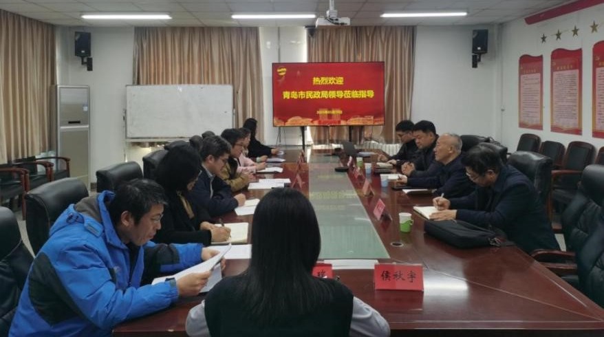 与青岛市民政局调研座谈交流会在金家岭校区二号实验楼214会议室举行。青岛市民政局二级巡视员王振竹、政策法规处相关负责同志、必赢亚洲