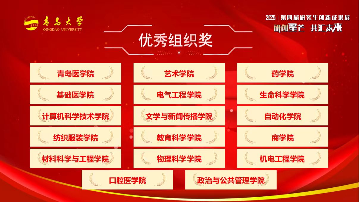 7月3日,青岛大学第四届研究生创新成果展于青岛大学(浮山校区)会议中心顺利举办。本届研究生创新成果展以“研创星芒 共汇未来”为主题,旨在为学生搭建激发创新活力、促进学术交流的重要平台,营造创新氛围,加强研究生学术交流,进一步提升我校研究生学术与实践创新能力,促进学科竞赛广泛开展,推动产教融合纵深发展。