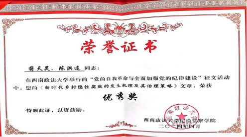 陈洪连教授在“党的自我革命与一体推进‘三不腐’”分论坛上作了题为《以自我革命精神一体推进“三不腐”体制机制建设》的发言,同与会专家交流“一体推进‘三不腐’的认识”“自我革命视域下一体推进‘三不腐’的运行机理”“以自我革命精神一体推进‘三不腐’的路径”等问题。另外,陈洪连教授指导蒋天昊同学撰写的论文《新时代乡村隐性腐败的发生机理及其治理策略》,经评委会评选获优秀奖。